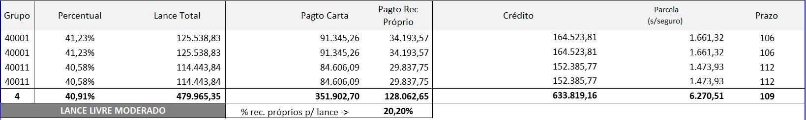ATENÇÃO: Você também tem a opção utilizar estratégias com base no histórico de grupo, recomendada para quem busca estratégias com base em análises personalizadas do histórico do grupo, suas condições para lance e necessidade de crédito. Nossa equipe apresentará projeções de acordo com suas possibilidades.